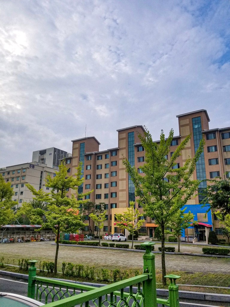 After a 10 minute taxi ride, I got to Chungnam National University (CNU). After some bad Korean conversations and lots of hand gestures, I finally got to my dorm. The building pictured above is going to be my home for the next 4 months! It is a girls only building (yes, an entire building just for females) and just in the next building over is the guys only dorm.